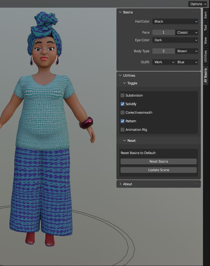 “AYFemale Basira” is a character generated and extracted from AYMultiCharacter Female with options to make simple variations.