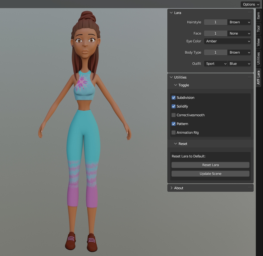 “AYFemale Lara” is a character generated and extracted from AYMultiCharacter Female with options to make simple variations.