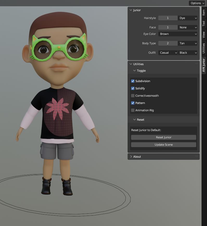“AYKid Junior” is a character generated and extracted from AYMultiCharacter Kid with options to make simple variations.